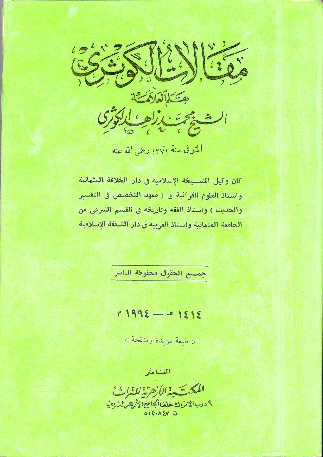 Imam Muhammad Zahid al-Kawthari sagt in seinem Buch Maqalat al-Kawthari auf der Seite 400, im zweiten Absatz (Klicke hier um den ganzen Artikel auf Arabisch zu lesen):