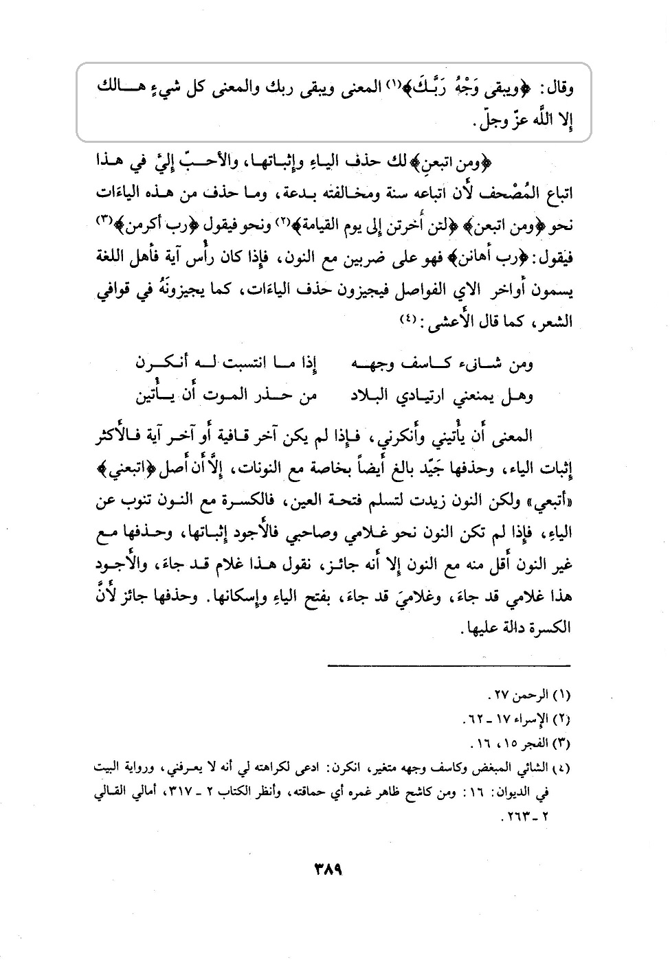 «.قال الله عز وجل : {كل شيء هالك إلا وجهه} ؛ وقال : {ويبقى وجه ربك} ؛ المعنى: ويبقى ربك؛ والمعنى: كل شيء هالك إلا الله عز وجل »