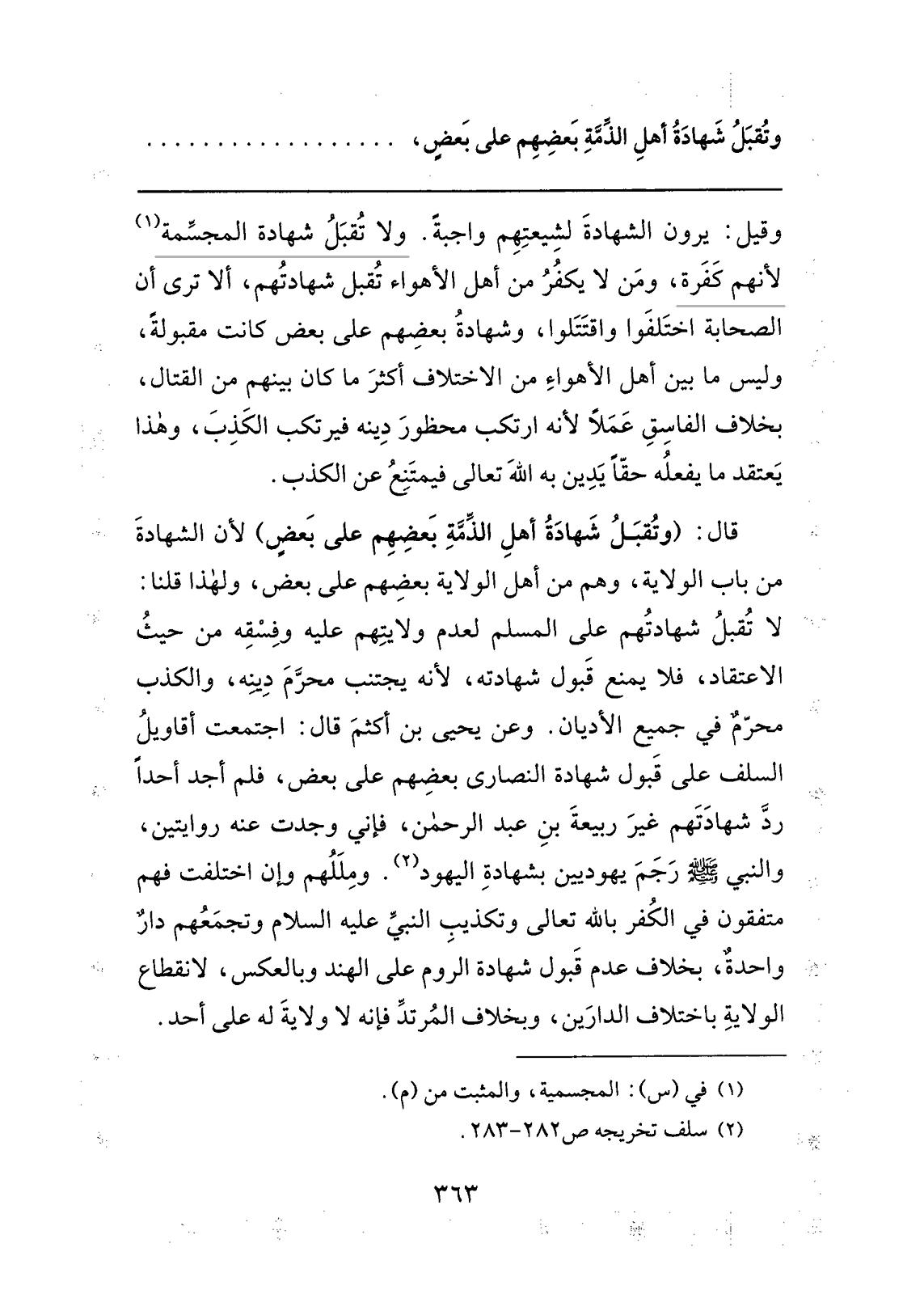 « ولا تقبل شهادة المجسمة لأنهم كفرة »