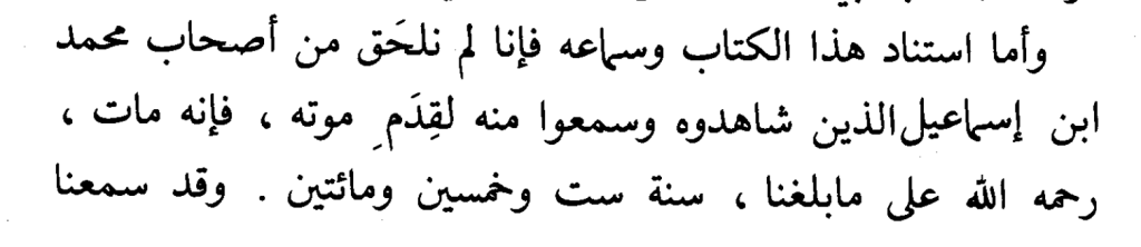 a. Imam Khattabi (verst. 388 n.H.) → Khalaf ibn Muhammad ibn Isma‘il al-Khayyam al-Bukhari (275-361 n.H.) → Qadi Ibrahim ibn Ma‘qil ibn al-Hajjaj al-Nasafi (verst. 295 n.H.) → Abu Abdullah al-Bukhari (194-256 n.H.), der Author.