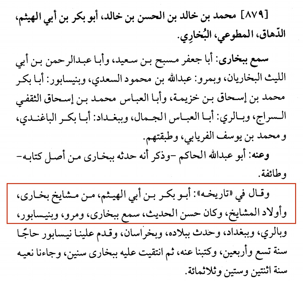 Imam Bayhaqi überlieferte in seinem Sunan al-Kubra von seinem Lehrer, dem Hadīthgelehrten und Author des Hadīthbuches „al-Mustadrak ʿala s-Sahihayn“, al-Hākim (geb. 321 n.H.) und er überliefert von Abū Muhammad ِAhmad Ibn ʿAbdullāh al-Muzanī (geb. 271 n.H.):