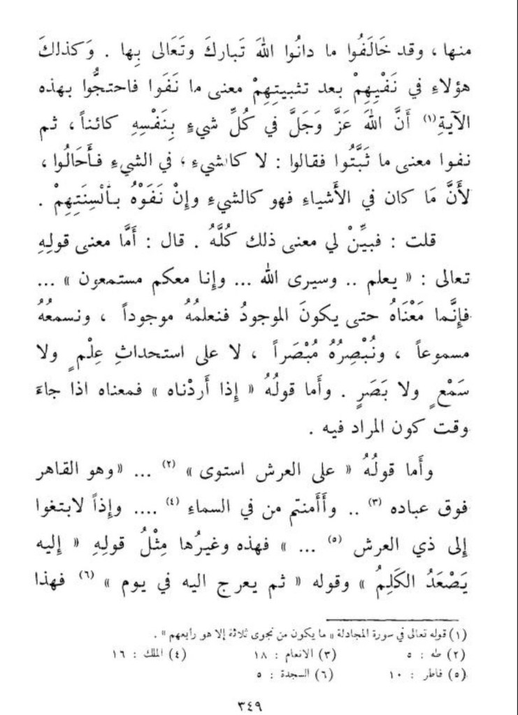 „Ich sage: Seine Aussage: istawa mit der Bedeutung von Zuwendung, ist korrekt, denn die Zuwendung (zu den Himmeln) bedeutet, dass beabsichtigen zur Erschaffung der Himmel. Und das beabsichtigen ist der Wille und dieses ist erlaubt, als eine Eigenschaft von Allah dem Erhabenen. Die Präposition thumma ist verbunden mit der Schöpfung und nicht mit dem göttlichen Willen.“
