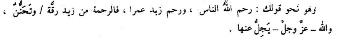 “Dank gebührt Allah, Derjenige, der keine Grenzen (Hadd) hat, nicht begrenzt (Mahdūd) ist und somit auch nicht beinhaltet (Yuhtawā) wird. Er unterliegt keiner zeitlichen Limitation, somit vergeht Er nicht. Von keinem der Orte (Makān) wird Er beinhaltet (Yuhīt) und über Ihn vergeht keine Zeit (Zamān).“