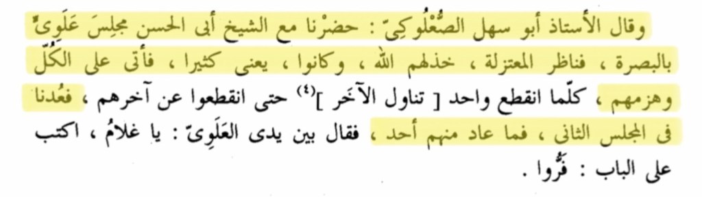 „Wir waren bei einer Versammlung in Basra mit Shaykh Abū al-Hasan al-Ash’arī, so debattierte er die Mu’tazilah und zerstörte sie bis zum letzten. Als wir zum nächsten Treffen zurückkamen, kam kein einziger von ihnen!“