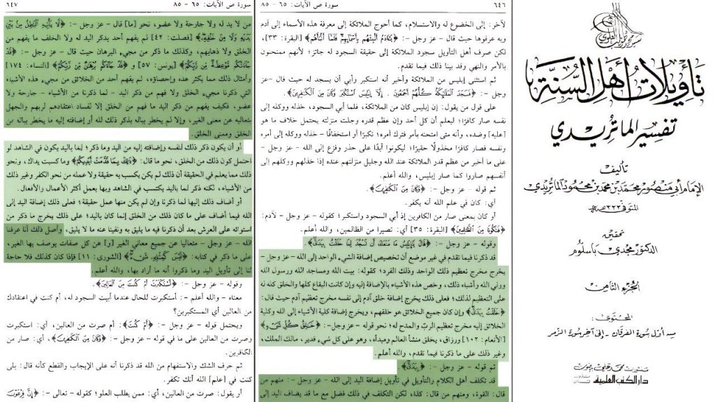 Imam Abu Mansur al-Maturidi sagt in seinem Tafsir „Ta’wilat Ahl as-Sunnah“ folgendes: